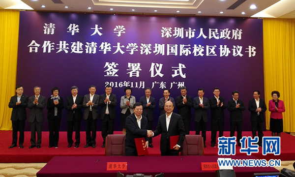 新華網(wǎng)北京11月4日電 今日,清華大學(xué)與深圳市人民政府在廣州簽署協(xié)議,在清華大學(xué)深圳研究生院、清華-伯克利深圳學(xué)院的辦學(xué)基礎(chǔ)上,進一步深化合作、拓展升級,共建清華大學(xué)深圳國際校區(qū)(Tsinghua University Shenzhen Global Campus, TUSGC,以下簡稱“國際校區(qū)”)。中共中央政治局委員、廣東省委書記胡春華,廣東省委副書記、省長朱小丹,廣東省委副書記、深圳市委書記馬興瑞,清華大學(xué)黨委書記陳旭等出席簽字儀式,清華大學(xué)校長邱勇和深圳市長許勤代表雙方簽署了合作協(xié)議。