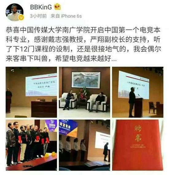 南廣學院為此還專門召開了一場藝術與科技專業(yè)(電子競技分析方向)新聞發(fā)布會,參加發(fā)布會的除了校方以外還有 LGD 俱樂部創(chuàng)始人潘婕,前星際爭霸選手楊沛,《中國電子競技幕后史》作者劉洋(BBKING)等電競圈人士。中國傳媒大學南廣學院副校長嚴翔教授為李曉峰、劉 洋、潘婕、楊沛、田云鵬五位電競從業(yè)者頒發(fā)了“業(yè)界導師”的聘書,這不僅標志著電子競技專業(yè)正式納入本科培養(yǎng)體系,更代表著電子競技行業(yè)的優(yōu)秀從業(yè)者們將 為培養(yǎng)更多優(yōu)秀的電子競技專業(yè)人才貢獻自己的力量。