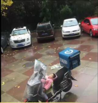 | 3歲女兒隨母送外賣 雨中酣睡電動(dòng)車 |