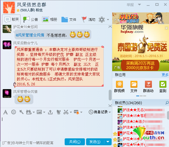 “風采依然固定總群”的女性群成員在索取紅包。網(wǎng)友供圖 在“風采依然總群”內,中國青年網(wǎng)記者看到,成員共有268人。男性群成員被稱為“土豪帥哥”,按照貢獻大小分為情郎、護法、護花、護群、名譽副主、名譽正主、風采親王7個等級。群主制定了一套升級規(guī)則,方式是在群內發(fā)紅包,男性群成員只能搶自己發(fā)的紅包,搶錯了必須發(fā)出來,否則會被移出群。女性群成員提供色情聊天服務,可以搶所有的紅包。 群內還會根據(jù)級別,為這些男性群成員提供一對一色情服務作為“獎勵”。名為“風采后勤寧兒”的成員發(fā)布的規(guī)則可見:護花級別每月贈送一次一對一服務,護群級別每月兩次,副主每月三次,正主每月五次。