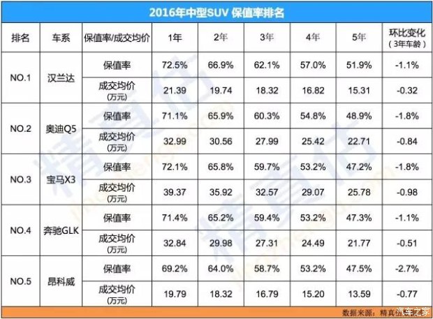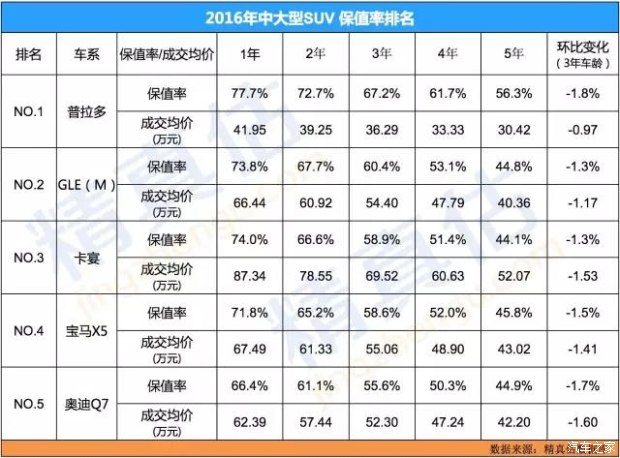 中型SUV以真7座開始作為參考指標,保值率出現一定的影響,這一車型保值率比較中,2017年將增加大量的有力競爭對手,保值率排名會有明顯的變化,如大眾途觀L、本田冠道、新寶馬X1以及自主品牌的旗艦SUV車型等。