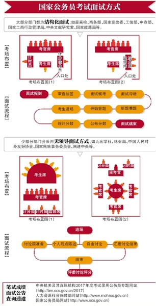 國家公務員考試的面試都有結(jié)構(gòu)化的流程,一般考生需要提前10-30分鐘到達指定面試地點報到,之后,考生抽簽確定分組和進場順序。輪到某考生入場時,引導員將到候考室叫號。