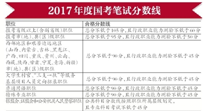 今年的分數(shù)線與往年基本保持持平,報考省級以上(含副省級)職位的合格分數(shù)線為:總分不低于105分,且行政職業(yè)能力測驗不低于60分;報考市(地)、縣(區(qū))級職位的合格分數(shù)線為:總分不低于95分,且行政職業(yè)能力測驗不低于50分。