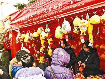 蜜蜂雞、民族雞、粉萌雞、項鏈雞……50余種近2000只造型各異的超萌玩偶雞在今年廠甸廟會上格外受歡迎,賣到火熱,而賣這些玩偶的廟會攤主是一群學生。原來這是35中國際部學生的公益集市“搬”進了廠甸廟會,學生們在北京傳統(tǒng)廟會上玩創(chuàng)意、做公益。