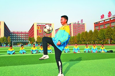 10月25日,河北省衡水市志臻學校安平校區(qū),學生進行足球顛球項目比賽。本報記者 郭俊鋒攝/光明圖片