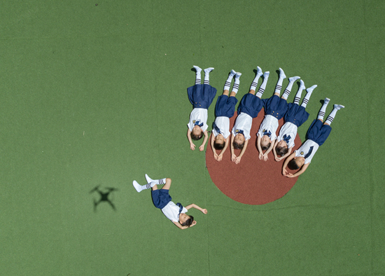 無人機航拍的一所幼兒園花式畢業(yè)照。視覺中國供圖