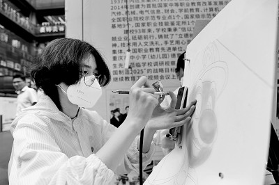 2021年5月30日,重慶市沙坪壩區(qū)職業(yè)教育活動周現(xiàn)場,學(xué)生們在進(jìn)行技能演示。孫凱芳攝/光明圖片