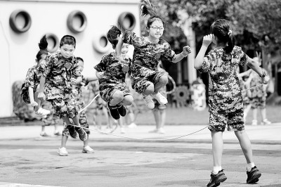 浙江省湖州市德清縣武康街道婦聯(lián)開展以“我是小小軍人”為主題的少兒軍事夏令營。王正攝/光明圖片