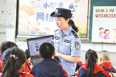 6月13日,江蘇省海安市公安局墩頭派出所民警走進(jìn)轄區(qū)小學(xué),開展未成年人預(yù)防網(wǎng)絡(luò)沉迷和網(wǎng)絡(luò)陷阱的安全教育,引導(dǎo)鄉(xiāng)村兒童樹立正確的上網(wǎng)觀,做到文明健康上網(wǎng),增強(qiáng)網(wǎng)絡(luò)安全意識。周 強(qiáng)攝(人民視覺)