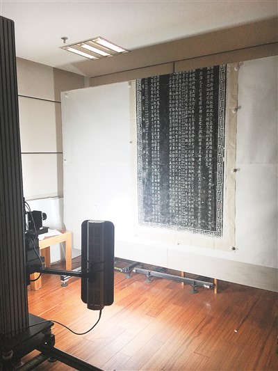 對(duì)石刻拓片進(jìn)行古籍?dāng)?shù)字化拍攝。中國(guó)國(guó)家圖書館供圖