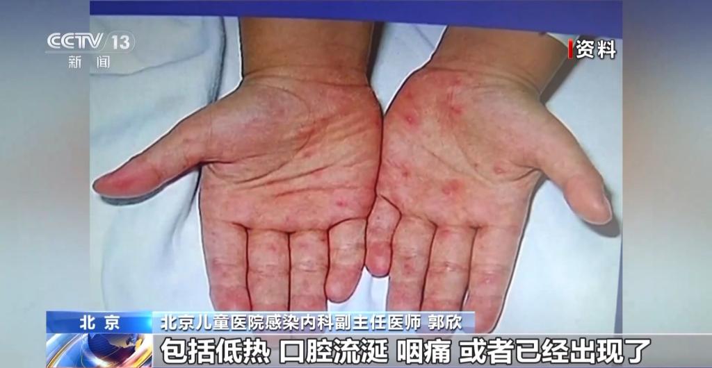 北京兒童醫(yī)院感染內(nèi)科副主任醫(yī)師 郭欣:通過一些蛛絲馬跡來早期發(fā)現(xiàn),可以去仔細觀察孩子的口腔、皮膚的黏膜,通常典型的癥狀就是累及手部、腳部,還有孩子的小屁屁上,可能會出現(xiàn)小紅點。在潛伏期3—5天之后,孩子可能早期會出現(xiàn)一些包括低熱、口腔流涎、咽痛,或者已經(jīng)出現(xiàn)了手足或者臀部的這種皮疹,這樣如果出現(xiàn)這樣的癥狀,家長就一定要注意孩子可能罹患了手足口病。