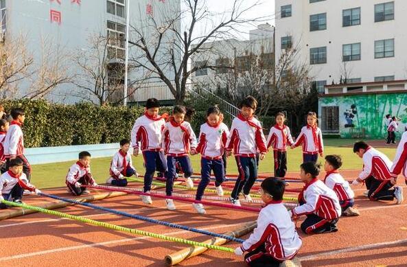 山東省日照市新?tīng)I(yíng)小學(xué)學(xué)生在進(jìn)行體育活動(dòng)。日照市體育局供圖