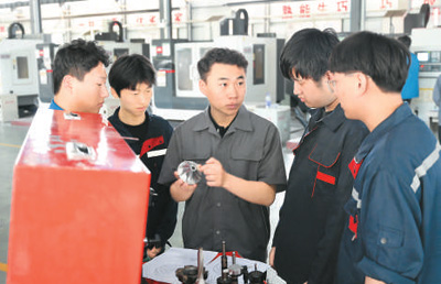 轉(zhuǎn)機(jī)出現(xiàn)在2017年。當(dāng)年,萊職邀請他到機(jī)電一體化方向從教,一入校就可定為中級職稱,一年后還有機(jī)會升副高?!皩W(xué)校有激勵(lì)機(jī)制,能晉升、能評獎(jiǎng)、有福利,我的職業(yè)天花板更高了,個(gè)人成長更好了!”付貴臣說。如今,萊職“雙師型”教師已有405名,按照山東省辦學(xué)質(zhì)量監(jiān)測指標(biāo)計(jì)算方法,學(xué)?!半p師型”教師比例達(dá)到98.97%。