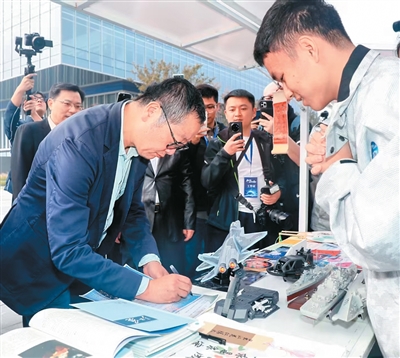 雙手捧著自己和小伙伴共同創(chuàng)作的科幻小說,一遍遍看著劉慈欣剛剛簽下的名字,高一學(xué)生陸逸航難掩激動(dòng)。