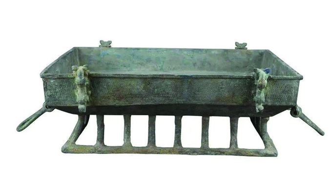 到商周時(shí)期,隨著生產(chǎn)力的進(jìn)步和生產(chǎn)資料的豐富,燒烤的方法也開(kāi)始升級(jí),烤肉有了專(zhuān)門(mén)的稱(chēng)法“炙”,《禮記》記載:“炙,貫之火上也?!币簿褪前讶獯饋?lái)放在火上燒。不過(guò)那時(shí)候的燒烤是貴族專(zhuān)供,也是祭祀用品,比如在戰(zhàn)國(guó)早期的曾侯乙墓中,曾出土過(guò)一件燒烤器,由上盤(pán)下?tīng)t組成,爐作淺盤(pán)形,敞口平底,下有三足,出土?xí)r爐內(nèi)尚有十幾塊未燒過(guò)的木炭,曾侯乙的日常菜譜中多半也有烤肉這么一道菜。