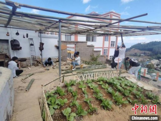 圖為龍?zhí)吨行膶W(xué)校學(xué)生們自己動手,修建蔬菜種植園。龍?zhí)吨行膶W(xué)校 供圖