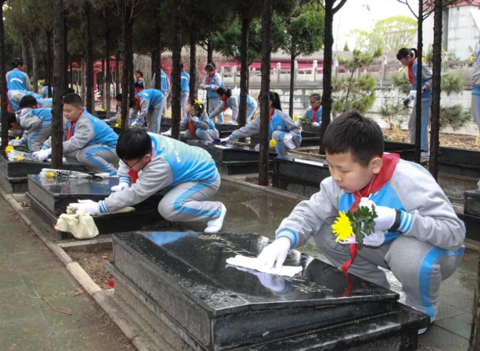 在祭奠活動中,同學(xué)們跟隨盧俊芬老師一道學(xué)習(xí)了趙正午烈士的革命故事,為烈士陵園的先烈們敬獻花籃、默哀,并細致的擦拭了每座烈士墓碑,以此表達對先烈們的無限哀思。