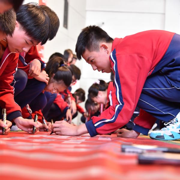 最后,全體師生、家長代表在條幅上簽字留名,讓誓言落在實處,讓夢想不再遙遠(yuǎn)。