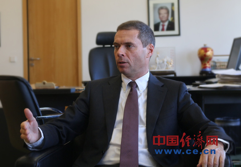 近日,德國(guó)駐華大使柯慕賢在他的辦公室接受中國(guó)經(jīng)濟(jì)網(wǎng)記者專(zhuān)訪。1961年出生于德國(guó)漢諾威的柯慕賢,曾任該國(guó)外交部歐洲司司長(zhǎng)。中國(guó)經(jīng)濟(jì)網(wǎng)記者 劉若星 攝影