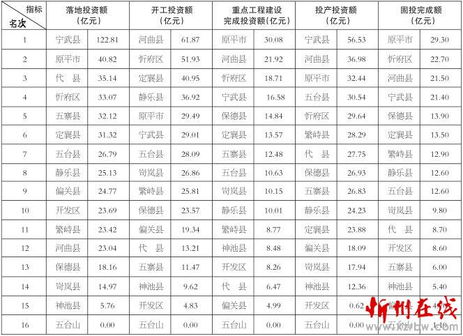 忻州1-5月各縣 (市、 區(qū)) 重點工程和固定資產(chǎn)完成額排名表