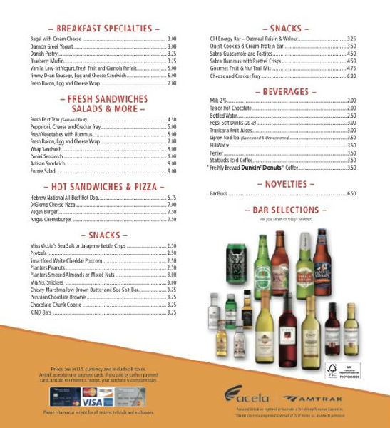 Acela上的食品價(jià)目表