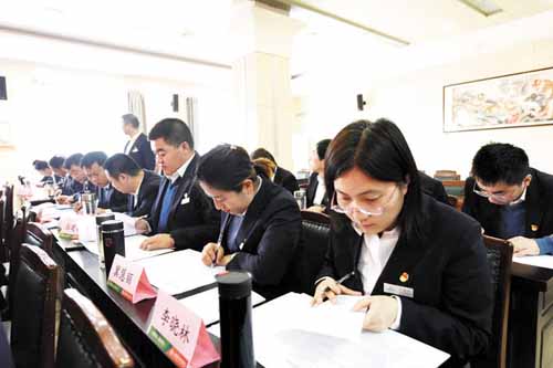 輪訓(xùn)期間,全體與會人員集中觀看《中國共產(chǎn)黨為什么能》《談?wù)勚袊J健方逃?。輪?xùn)結(jié)束后統(tǒng)一組織了結(jié)業(yè)考試。(楊 煦)