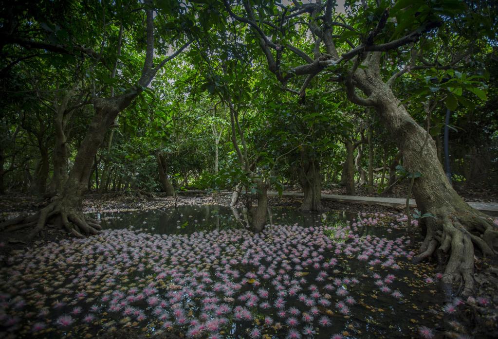 七里村玉蕊林有400多畝,共1萬(wàn)余株。中國(guó)林業(yè)科學(xué)研究院熱帶林業(yè)研究所研究員廖寶文說(shuō),七里村玉蕊林面積之大,全國(guó)罕見(jiàn),且多數(shù)樹齡在800年以上,是海南島內(nèi)不可復(fù)制的淡水濕地森林“活標(biāo)本”。
