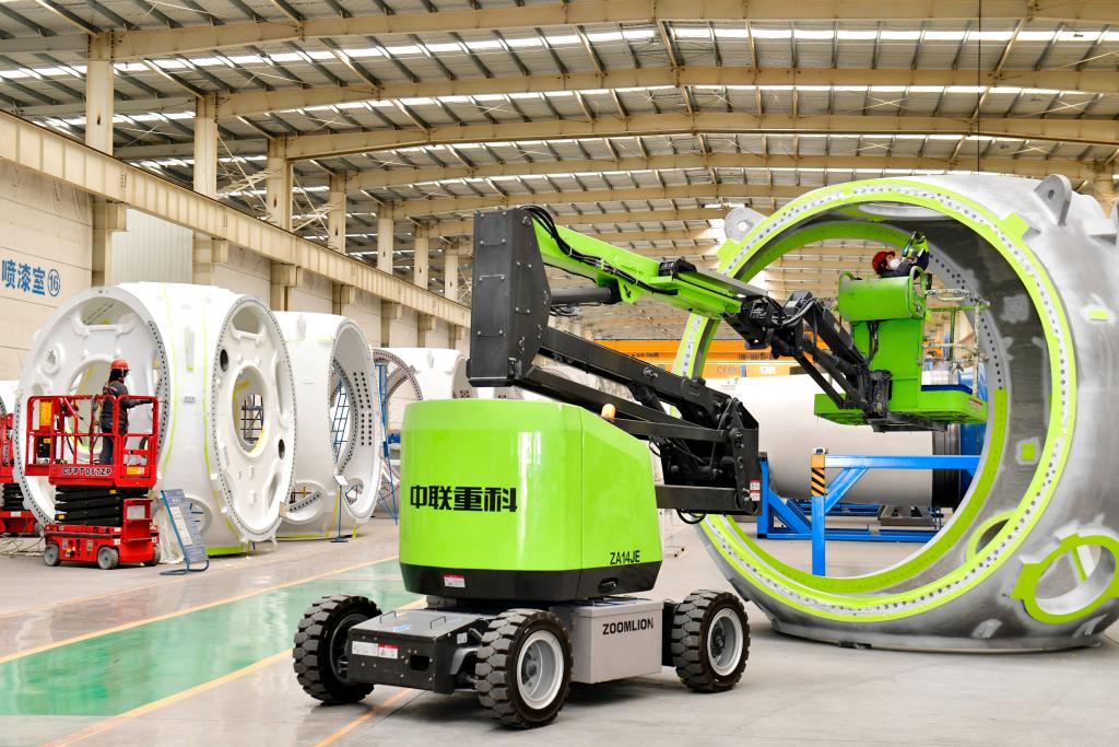 在位于山東省濱州市惠民縣的山東國創(chuàng)精密機(jī)械有限公司,工作人員對風(fēng)電輪轂進(jìn)行噴涂作業(yè)(1月26日攝)。新華社記者 郭緒雷 攝