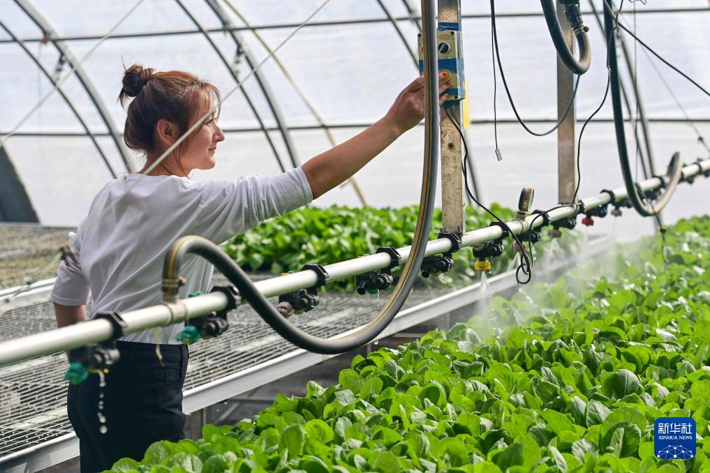 在新疆阿克蘇市阿依庫勒鎮(zhèn)蔬菜基地,種植戶操作噴淋設備為幼苗澆水(3月22日攝)。