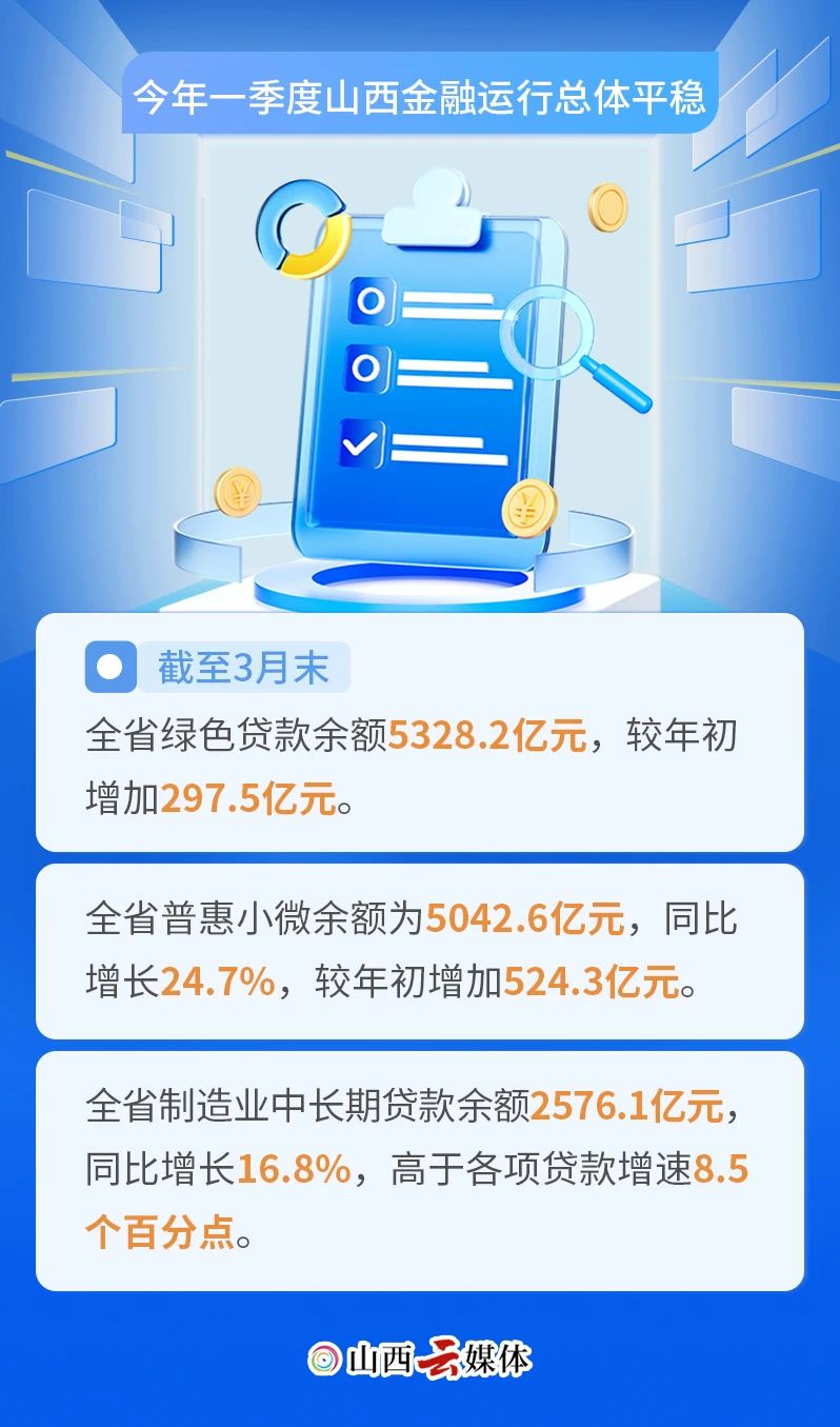 4月28日下午,人民銀行山西省分行召開2025年一季度山西省金融統(tǒng)計(jì)數(shù)據(jù)新聞發(fā)布會(huì),會(huì)議介紹,2025年一季度,我省社會(huì)融資規(guī)模、金融機(jī)構(gòu)貸款、存款均保持平穩(wěn)增長,信貸結(jié)構(gòu)繼續(xù)優(yōu)化,支持經(jīng)濟(jì)恢復(fù)和高質(zhì)量轉(zhuǎn)型發(fā)展的力度進(jìn)一步加大。5張海報(bào),讀懂“新鮮”數(shù)據(jù)。