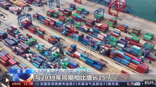 海關(guān)總署今天(8月8日)對外公布,今年前7個月,我國貨物貿(mào)易進出口總值23.55萬億元,外貿(mào)運行平穩(wěn)、符合預(yù)期。