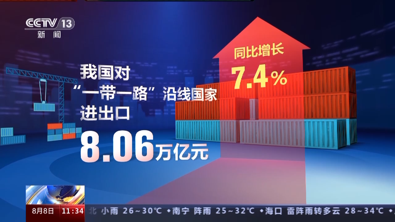 我國對“一帶一路”沿線國家進出口8.06萬億元,同比增長7.4%,占我國外貿(mào)比重同比提升2.2個百分點至34.2%,國際市場更加多元化。