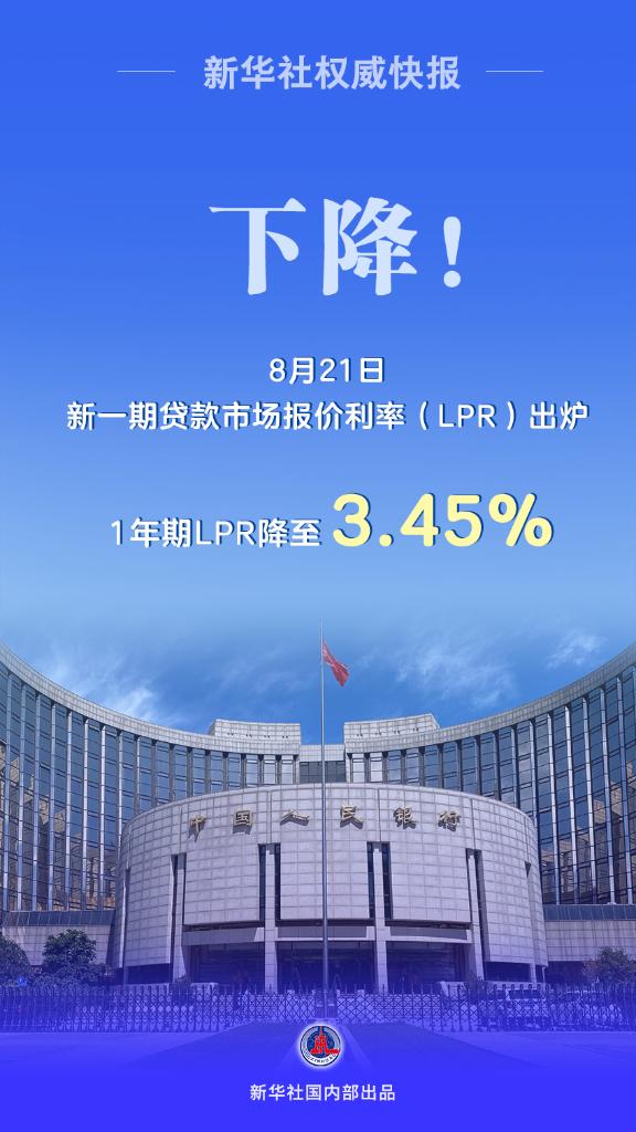 8月21日,新一期貸款市場報價利率(LPR)出爐