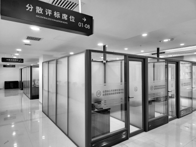 參觀完一層大廳后,工作人員將媒體觀摩團帶到了四層一個全封閉的區(qū)域——評標區(qū),隨機抽取的專家會在這里進行評標工作。代表們首先是被一系列的科技防范“硬措施”所震撼,人臉識別身份核驗機、金屬探測門防范冒名頂替,通信設(shè)備存儲柜、文件傳送智能機器人阻斷不必要的溝通,軌跡定位卡、電子呼叫系統(tǒng)、電子門牌等技術(shù)的應用實現(xiàn)了對交易人員身份類別權(quán)限的精準管控……還有全方位、超高清、永久保存的監(jiān)控設(shè)備,實時對外直播的電子大屏,實現(xiàn)了嚴密管控、處處震懾。