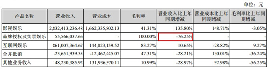 據(jù)悉,華誼品牌授權(quán)與實景娛樂三種主要產(chǎn)品形態(tài)包括:華誼兄弟電影小鎮(zhèn)、華誼兄弟電影世界和華誼兄弟文化城。2015年報告顯示,華誼兄弟品牌授權(quán)與實景娛樂板塊累計簽約項目達(dá) 13個。該板塊營業(yè)收入比上年同期減少了76.25%,王中軍號稱要做20個項目,但財報上能見到的目前僅有??谟^瀾湖項目和蘇州項目。