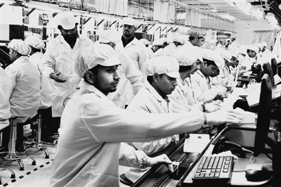 近年來(lái),印度政府出臺(tái)政策鼓勵(lì)電子產(chǎn)品本地制造,vivo手機(jī)在毗鄰新德里的諾伊達(dá)地區(qū)建立了生產(chǎn)線。該工廠為當(dāng)?shù)靥峁┝?000個(gè)就業(yè)崗位,促進(jìn)了當(dāng)?shù)氐慕?jīng)濟(jì)發(fā)展。圖為工人們正在生產(chǎn)線上作業(yè)。記者 鄒 松攝