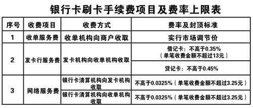 其中,發(fā)卡機(jī)構(gòu)收取的發(fā)卡行服務(wù)費(fèi)將改為不區(qū)分商戶類別,實(shí)行政府指導(dǎo)價、上限管理,并對借記卡、貸記卡差別計費(fèi)。發(fā)卡行服務(wù)費(fèi)費(fèi)率水平降低為借記卡交易不超過交易金額的0.35%,貸記卡交易不超過0.45%。借記卡交易單筆收費(fèi)金額不超過13元,貸記卡交易不實(shí)行單筆收費(fèi)封頂控制。