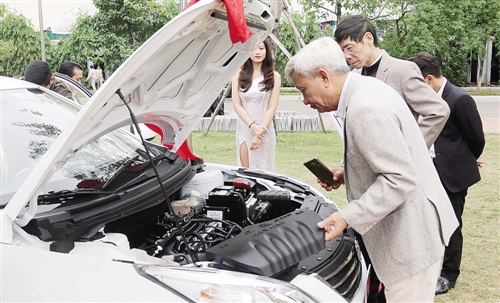 圖為越南客戶在了解東風(fēng)乘用車(chē)。 本報(bào)駐河內(nèi)記者 崔瑋祎攝