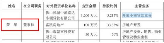野馬財(cái)經(jīng)發(fā)現(xiàn),蕭華是一家名為“佛山禪城中盈盛達(dá)小額貸款有限公司”(下稱:中盈盛達(dá))的股東。該公司注冊(cè)資本2.3億,成立于2011年,主要業(yè)務(wù)是辦理小額貸款、開展中小微企業(yè)融資、理財(cái)咨詢。