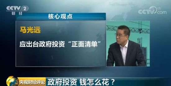 央視財經(jīng)評論員 馬光遠(yuǎn):《政府投資條例》有劃時代的意義,把政府投資的邊界劃得已經(jīng)非常清晰。但是,我覺得如果要更加清晰的話,還應(yīng)該出臺政府投資的“正面清單”。