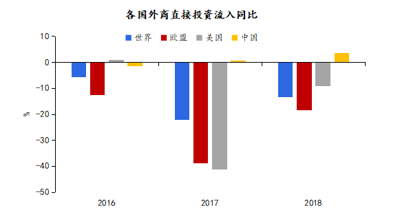圖表3 中國吸引外商投資穩(wěn)中有升,而全球主要經(jīng)濟(jì)體均為負(fù)增長