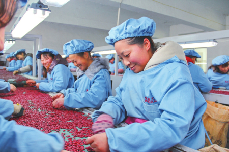 既抓良種繁育,又抓綠色種植技術(shù)推廣。今年,岢嵐縣以“龍頭企業(yè)+鎮(zhèn)村”的模式,建設(shè)4個綠色種植基地共計5830畝,讓加工銷售企業(yè)的綠色理念直達農(nóng)戶,讓技術(shù)要求和品種選用落實到地頭,帶動全縣建成紅蕓豆標準化生產(chǎn)基地8.4萬畝。紅蕓豆出口商煒嵐工貿(mào)有限公司生產(chǎn)經(jīng)理劉永旺說:“今年市場需求旺盛,價格一路走高,從我們掌握的信息來看,大多數(shù)農(nóng)戶在每斤6元的時候出售。全縣農(nóng)民銷售紅蕓豆一項就在1.5億元以上,發(fā)展紅蕓豆產(chǎn)業(yè)經(jīng)濟效益十分可觀?!?/p>