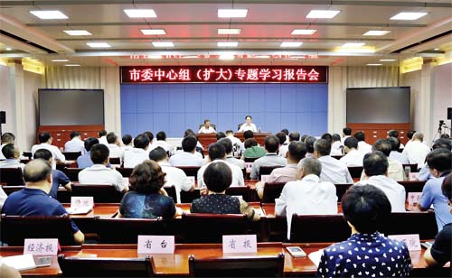 圖為市委中心組(擴(kuò)大)專題學(xué)習(xí)會(huì)會(huì)場(chǎng)。趙菁 攝