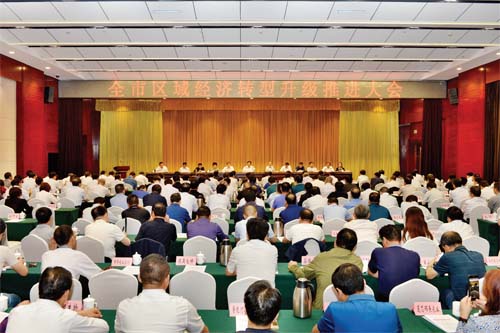 會(huì)議指出,要在六方面做好轉(zhuǎn)型升級(jí)工作。第一,在規(guī)劃與指導(dǎo)上,要把握高度,突出精度。必須清醒地把握轉(zhuǎn)型升級(jí)的大背景、大趨勢,全市上下要強(qiáng)化不轉(zhuǎn)沒出路、慢轉(zhuǎn)就落后的理念,必須準(zhǔn)確把握轉(zhuǎn)型升級(jí)的新標(biāo)準(zhǔn)、新要求,始終堅(jiān)持轉(zhuǎn)型為綱、產(chǎn)業(yè)為王、創(chuàng)新為上、改革為要,要做大優(yōu)勢,補(bǔ)齊短板。必須加強(qiáng)和改善黨對(duì)經(jīng)濟(jì)工作的領(lǐng)導(dǎo),將轉(zhuǎn)型升級(jí)內(nèi)容納入市委常委會(huì)1+3季度經(jīng)濟(jì)運(yùn)行分析制度,做到底清數(shù)明、精準(zhǔn)指導(dǎo)。第二,在產(chǎn)業(yè)和項(xiàng)目上,要突出轉(zhuǎn)型、推動(dòng)轉(zhuǎn)型。核心要在六大主戰(zhàn)場主陣地,突出新動(dòng)能培育、新技術(shù)應(yīng)用、新產(chǎn)品開發(fā)。要緊盯產(chǎn)業(yè)項(xiàng)目不放,緊盯相關(guān)指標(biāo)不放,緊盯落后的縣(市、區(qū))和部門不放,大力推動(dòng)支柱產(chǎn)業(yè)轉(zhuǎn)型升級(jí),大力推動(dòng)開發(fā)區(qū)轉(zhuǎn)型升級(jí),大力推動(dòng)民營經(jīng)濟(jì)轉(zhuǎn)型升級(jí)。要把功夫下在招商引資、招財(cái)引智和項(xiàng)目落地上。要落實(shí)責(zé)任制,將縣細(xì)化到干部和崗位。第三,在協(xié)調(diào)與環(huán)境上,要深化改革、擴(kuò)大開放。要堅(jiān)持以改革促轉(zhuǎn)型,堅(jiān)持以開放促轉(zhuǎn)型,堅(jiān)持以環(huán)保倒逼轉(zhuǎn)型,堅(jiān)持以環(huán)境保障轉(zhuǎn)型。第四,在市場與人才上,要激活主體,突出創(chuàng)新。要以更大力度推進(jìn)創(chuàng)新發(fā)展,補(bǔ)齊我市創(chuàng)新驅(qū)動(dòng)短板,要發(fā)揮市場主導(dǎo)作用,強(qiáng)化企業(yè)主體地位和科技人才的主力作用,在新一輪的人才大戰(zhàn)中有所作為,引導(dǎo)創(chuàng)新要素向企業(yè)集聚。要全面深化企業(yè)改革,扎實(shí)推進(jìn)國企改革和轉(zhuǎn)型升級(jí)。要為企業(yè)家放心干、放膽干、放手干撐腰做主,要發(fā)揮金融在區(qū)域經(jīng)濟(jì)轉(zhuǎn)型中的發(fā)動(dòng)機(jī)、產(chǎn)業(yè)升級(jí)中的推進(jìn)器作用,切實(shí)激發(fā)活力。第五,在責(zé)任與擔(dān)當(dāng)上,要強(qiáng)化主責(zé),聚焦主業(yè)。要認(rèn)真貫徹落實(shí)中辦印發(fā)的《關(guān)于進(jìn)一步激勵(lì)廣大干部新時(shí)代新?lián)?dāng)新作為的意見》,全面落實(shí)習(xí)近平總書記關(guān)于“三個(gè)區(qū)分開來”的重要要求,旗幟鮮明為敢于擔(dān)當(dāng)?shù)母刹繐窝膭?。市縣黨委、政府班子成員對(duì)轉(zhuǎn)型升級(jí)要做到指標(biāo)到人、臺(tái)賬管理、動(dòng)態(tài)調(diào)控、年底交賬,并作為領(lǐng)導(dǎo)班子和領(lǐng)導(dǎo)干部年度民主生活會(huì)對(duì)照檢查的重要內(nèi)容,作為干部選拔任用的重要依據(jù)。黨政部門的每一位班子成員,都要聯(lián)系一個(gè)產(chǎn)業(yè)園區(qū),抓好一個(gè)以上轉(zhuǎn)型升級(jí)示范項(xiàng)目。相關(guān)部門都要對(duì)標(biāo)履職,量化到人,共同推動(dòng)今年轉(zhuǎn)型升級(jí)考核指標(biāo)應(yīng)統(tǒng)盡統(tǒng)、能升盡升、能增盡增、全力破零。第六,在考核與問責(zé)上,要分類實(shí)施,從嚴(yán)要求。在今年區(qū)域經(jīng)濟(jì)轉(zhuǎn)型升級(jí)考核中排后三位的要公開作出檢查。