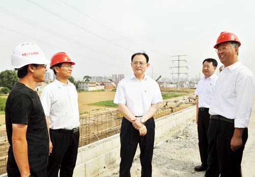 在忻州西站以北的大西客專與忻五公路交叉地段,京太鐵路(雄忻段)引入大西客專施工現(xiàn)場(chǎng),李俊明詳細(xì)了解大西客專既有線路、雄忻高鐵接軌的近期工程和預(yù)留遠(yuǎn)期規(guī)劃,實(shí)地察看左右進(jìn)出線的路基打樁、擋墻施工、路基幫寬等正在進(jìn)行的工程,聽(tīng)取各主要節(jié)點(diǎn)工期計(jì)劃安排,詢問(wèn)工程實(shí)施中的困難問(wèn)題。