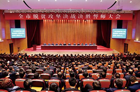 圖為全市脫貧攻堅(jiān)決戰(zhàn)決勝誓師大會(huì)會(huì)場(chǎng)。本報(bào)記者劉紀(jì)森攝