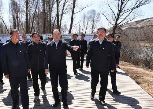 圖為4月1日,省人大常委會(huì)副主任、市委書記李俊明在靜樂(lè)縣汾河川國(guó)家濕地公園調(diào)研。本報(bào)記者 劉紀(jì)森 攝