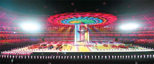 8月8日,第二屆全國青年運(yùn)動會開幕式在山西省太原市山西體育中心紅燈籠體育場舉行。圖為演員在開幕式上表演。