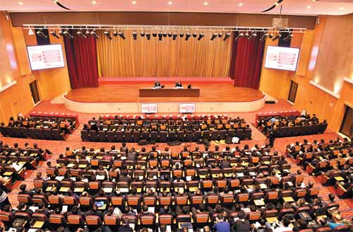 圖為我市學(xué)習(xí)貫徹黨的十九屆四中全會(huì)精神省委宣講團(tuán)報(bào)告會(huì)會(huì)場(chǎng)。本報(bào)記者 劉紀(jì)森 攝