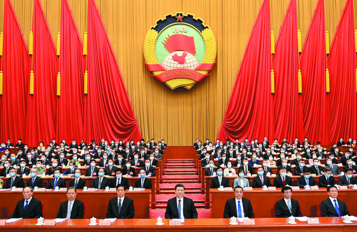 5月21日,中國(guó)人民政治協(xié)商會(huì)議第十三屆全國(guó)委員會(huì)第三次會(huì)議在北京人民大會(huì)堂開(kāi)幕。這是習(xí)近平、李克強(qiáng)、栗戰(zhàn)書(shū)、王滬寧、趙樂(lè)際、韓正、王岐山在主席臺(tái)就座。 新華社記者 李學(xué)仁 攝